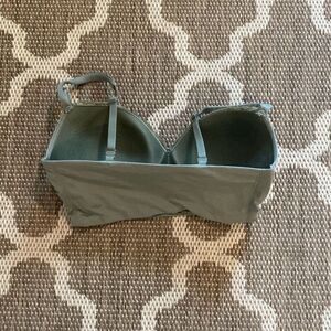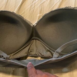 Victoria’s Secret bra size 34DD this is the padded no wire bra. The color is a olive green color. See pictures for more details in good preowned condition normal wear and tear.