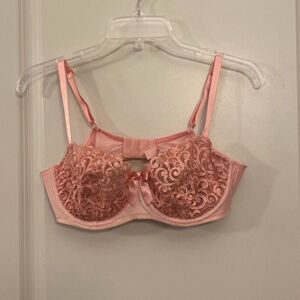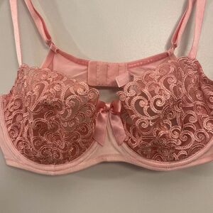 Victoria’s Secret bra size 38C the color is pink the bra is lace super cute bra has an underwire