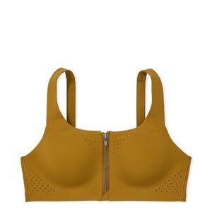 Experience ultimate comfort and support with this olive sports bra from Victoria's Secret. Featuring a front zipper closure and wide shoulder straps, this piece is designed for both athletic performance and everyday wear. The stretchy material and wide under-bust band ensure a secure fit, while the scoop neckline adds a touch of classic style.