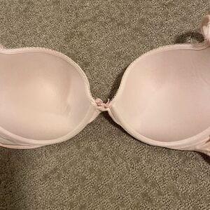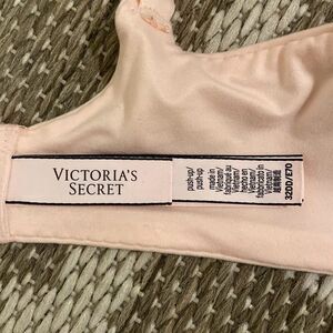 Victoria’s Secret bra size 32DD this is the push-up bra. The color is pink in good preowned condition normal wear and tear. See pictures for more details.