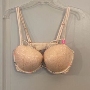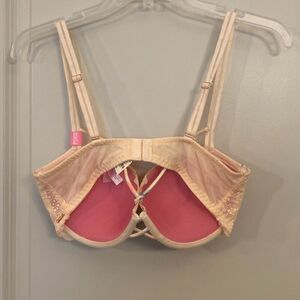 Victoria’s Secret bra this is the date push-up bra size 36D this bra is new still has the tags attached the color is pink lace light pink hot pink on the inside cups. See pictures for more details.