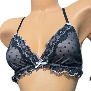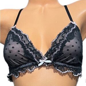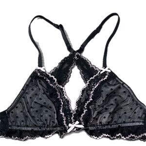 Victoria’s Secret Unlined triangle mesh dot and lace bralette bra