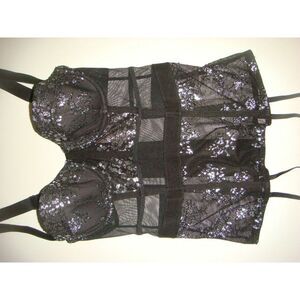 Victoria's Secret 32B GARTER corset+TEDDY one-piece+XS thong BLACK silver foil