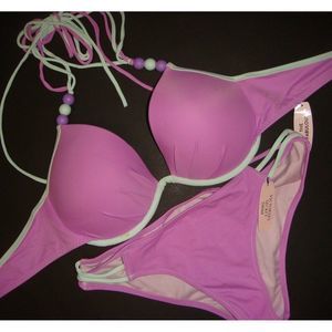 Victoria's Secret beach orchid purple lilac mint colored bikini embellished with beads
