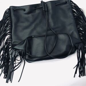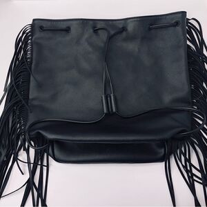 Victoria’s Secret Black Leather Fringe Cinch Backpack
