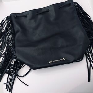 Victoria’s Secret Black Leather Fringe Backpack