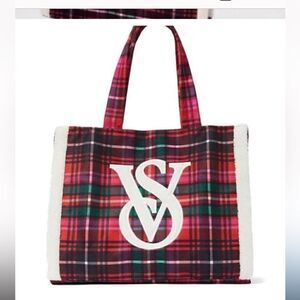 Victoria’s Secret Christmas holiday plaid tote NWT