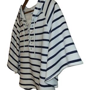Victoria's Secret Oversized Navy and White Stripe Hooded Sweatshirt Poncho Small