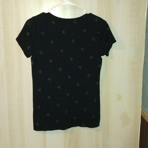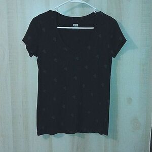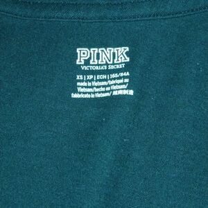 Pre-owned Victoria's Secret PINK t-shirt. Color is true black with no fading. Size XS. Measurements: shoulder to shoulder 13", armpit to armpit 17", total length 24".