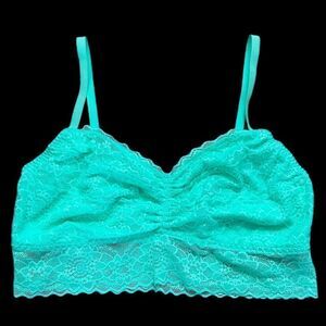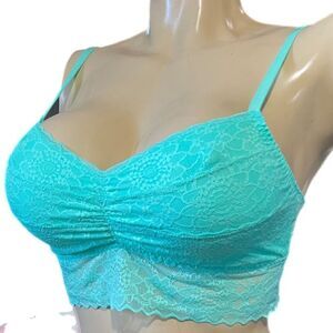 Victoria’s Secret Pink lace Unlined Ruched Front bralette bra green Large