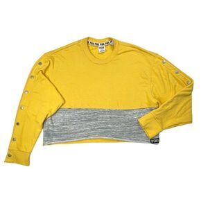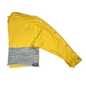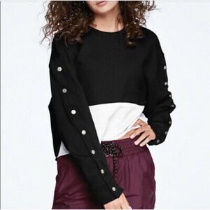 Victoria's Secret Pink Colorblock Snap Button Sleeve Crop Sweatshirt. Gently preowned in good overall condition. No rips or holes. color discoloration on 2 buttons & slight dust/dirt stain on back sleeve. Thin fleece interior. * Last 2 pics are for reference fit only* Good used condition see photos for all measurements and details   We ship fast, Your item will ship out The Next Business Day!!!