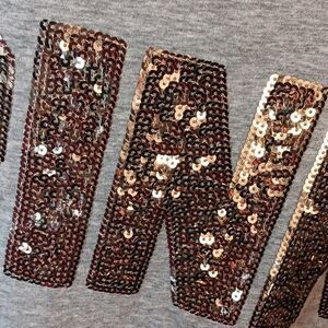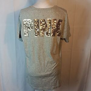 This gray short sleeve VS Pink sequined tee is a size Small with a pit to pit measuring 21.5. In excellent condition. All offers are welcome.