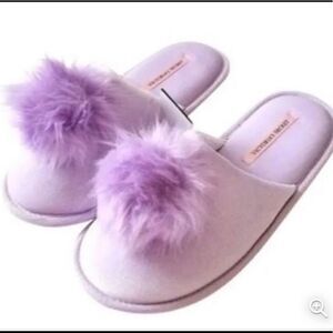 Victoria's Secret Pom Pom Lavender Lilac Slippers