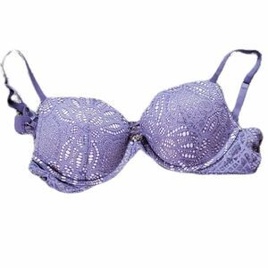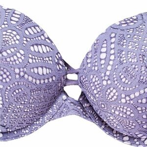 (F) Victoria's Secret Purple Lace Dream Angels Purple Lace Push Up Padded Bra with adjustable straps, Size 34C