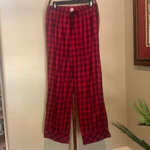 Red plaid with some metallic threads pajama s by Victorias Secret. Drawstring waist . Very good preloved condition.