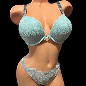 Victorias Secret Set Very Sexy Bombshell Shine Strap Rhinestone’s Logo Push Up lace bra