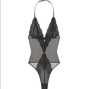 Victoria’s Secret Sexy Sheer lace mesh teddy V wire plunge black
