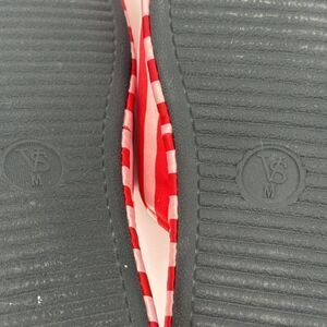 Victorias Secret Slippers Satin Material With Bow Sequin Embellishment Red & Pink Striped Women's Size M 7-8 House Shoes Glamour