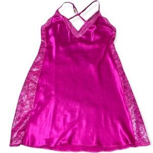 Victoria’s Secret Small Hot Pink Lingerie Slip Dress with foiled lace! Sexy!