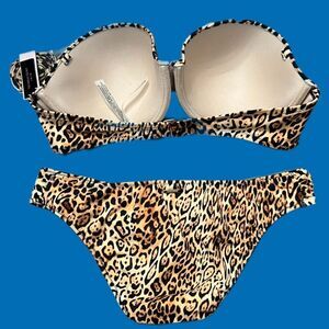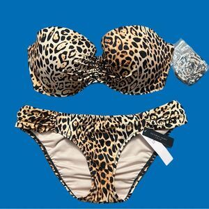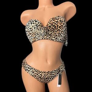 Victorias Secret Swim Set Bandeau Halter Bikini top and Cheeky Bottoms Leopard