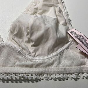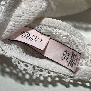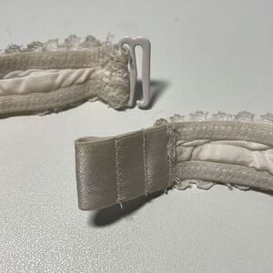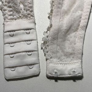 This is such a beautiful bralette with halter top closure as well as an adjustable chest strap. It’s cream with eyelet pattern. No issues. Size XS