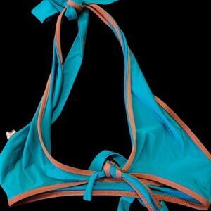 Teal and brown in color. Very vibrant and sexy bikini. Pre-Owned.