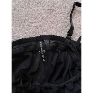 Excellent condition Black lace with crystal studded breast cups Adjustable straps Secure closure between breasts Tie front Underwire bra Push up padding. Victoria’s Secret sexy little things collection No stains or flaws