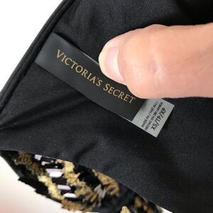 Has black & gold sequins and is padded, has hardware to add your own shoulder straps if wanted-not included