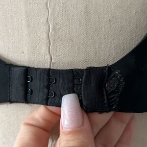 Comfortable bra only shows In The back next to the hook clip of part has some tear both side same part see pict rest good condition can be hand stitched, please make sure ur ok with this before purchasing the straps in the back are convertible