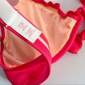 victorias secret womens ruffle swim bikini top size 34A Bright coral orange Lined *pads removed sold as is Polyester spandex