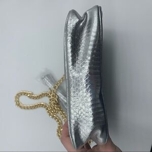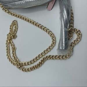 Victoria’s Secret Silver metallic crossbody purse with gold metal chain for strap New with tag Tassel covered Smoke free and pet free home