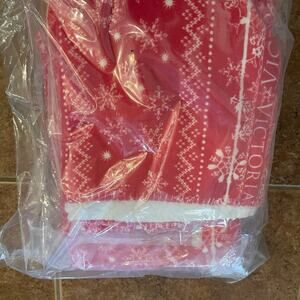 Victorias’s Secret red holiday fleece Sherpa blanket throw snowflakes NEW in Pkg