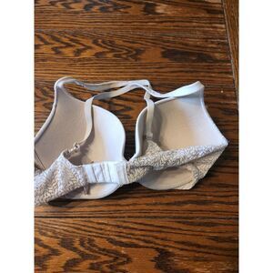Victoria's secret perfect shape cream&white lacy front clasp bra sz 34DD in good used condition with some wear as shown in the pictures.
