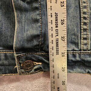 Victorious Jean Jacket Womens XL Blue 4 pockets distressed Flaw slight stain hip