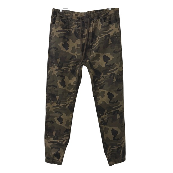 Keywords: camo print, military, streetwear, casual wear, athletic pants, utility pants, relaxed fit, elastic waistband, drawstring, comfortable, fashion pants, everyday wear