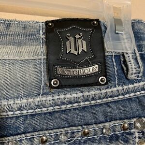 Victorious Mens Jeans 34x32 Distressed Blue Baggy Hip Hop Skater Y2K Studded