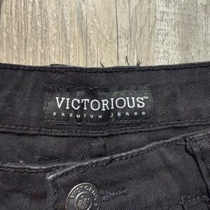 Victorious Premium Jeans black denim shorts, perfect for a casual yet stylish look. Designed for comfort and flexibility, these shorts are made from 97% cotton and 3% spandex, giving you a soft, breathable, and slightly stretchy feel. The classic five-pocket design provides functionality, while the button and zip fly closure ensures a secure fit.