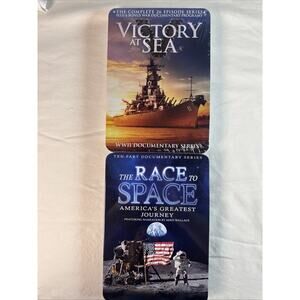 Victory At Sea The Race To Space Documentary Series Lot of 2 (DVD, Tin Case) New. Victory at Sea is brand new and factory sealed. The Race to Space is clean, and in like new condition. Discs are in mint condition (no marks or scuffs); plays well. Metal tin cases are in original condition. Please review photos for details.
