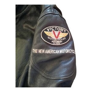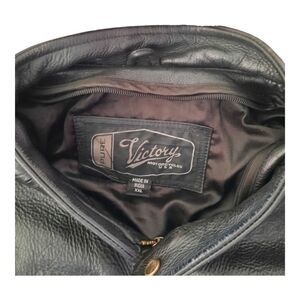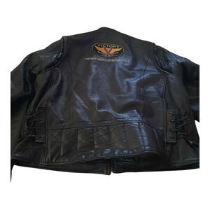 Stylish and durable black leather motorcycle jacket for men. Perfect for a sleek and modern look.