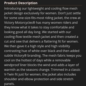 Victory Motorcycle Mesh Riding Jacket