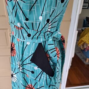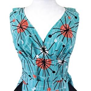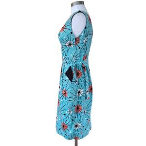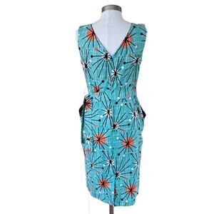 Victory Parade Bettie's Bombshells Atomic Sunburst Print Retro Sheath Dress Aqua