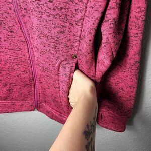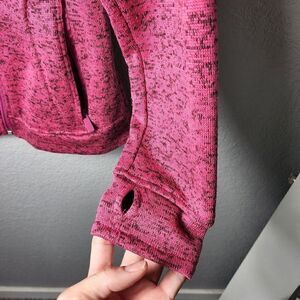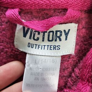 Victory Outfitters athletic jacket in magenta pink with zip-pockets. Fleece-lined. Thumb holes. Size Large.