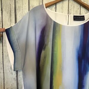 Vida Womens Art to Wear Top Size 1Extra Cap Sleeve Abstract Artsy Lightweight