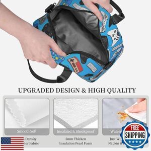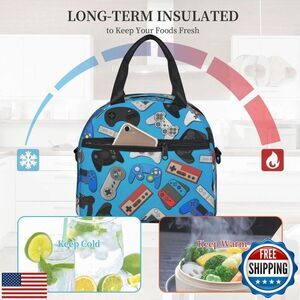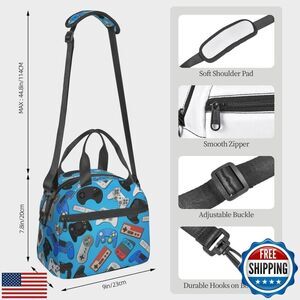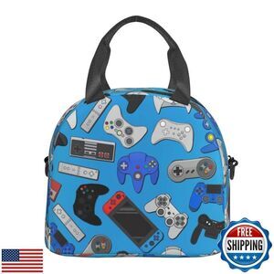 Video Game Controller Background Lunch Bag Gaming Theme Reusable Insulated Lunch Tote Bag Lunchbox Container With Adjustable Shoulder Strap For Office Work School Picnic Travel