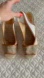 This beautiful peep toe Vidorreta espadrille canvas wedge sandal is in excellent condition. The tan leather trim give it a great definition and style. Made in Spain. Worn only once. 3.5” heels.