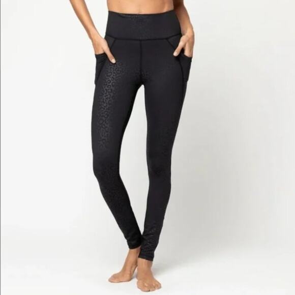 This Vie Active legging comes in a luxurious black embossed leopard print! Subtle leopard print. They lift your booty, are slim all over and help you rock every workout. Run, squat, dance or salute the sun-these supple, wicking tights with their stomach-flattening waistband move with you, stay put (and won't go see-through!) while you bend, keeping you comfortably stylish during and after your workout. And, they have pockets!