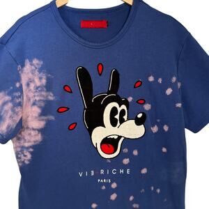 Vie Richie Paris Mens M Cartoon Dog Short Sleeve Sweater Top Bleached Streetwear