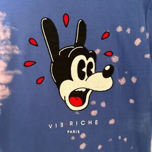 This unique sweater top by Vie Richie Paris features a cartoon dog graphic in a modern bleached design. Ideal for adding a playful yet edgy statement to casual outfits, streetwear looks, or creative events.