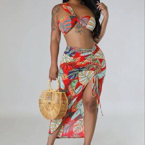 Viena Floral Two Piece Skirt and Crop top Sexy Set