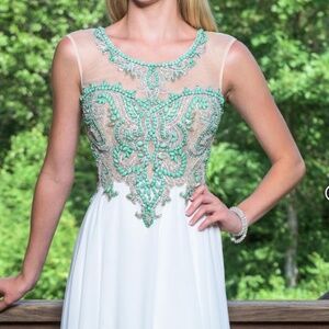 Vienna A-Line Gown with Green and Silver Beading Glam Squad Drama Prom or Event